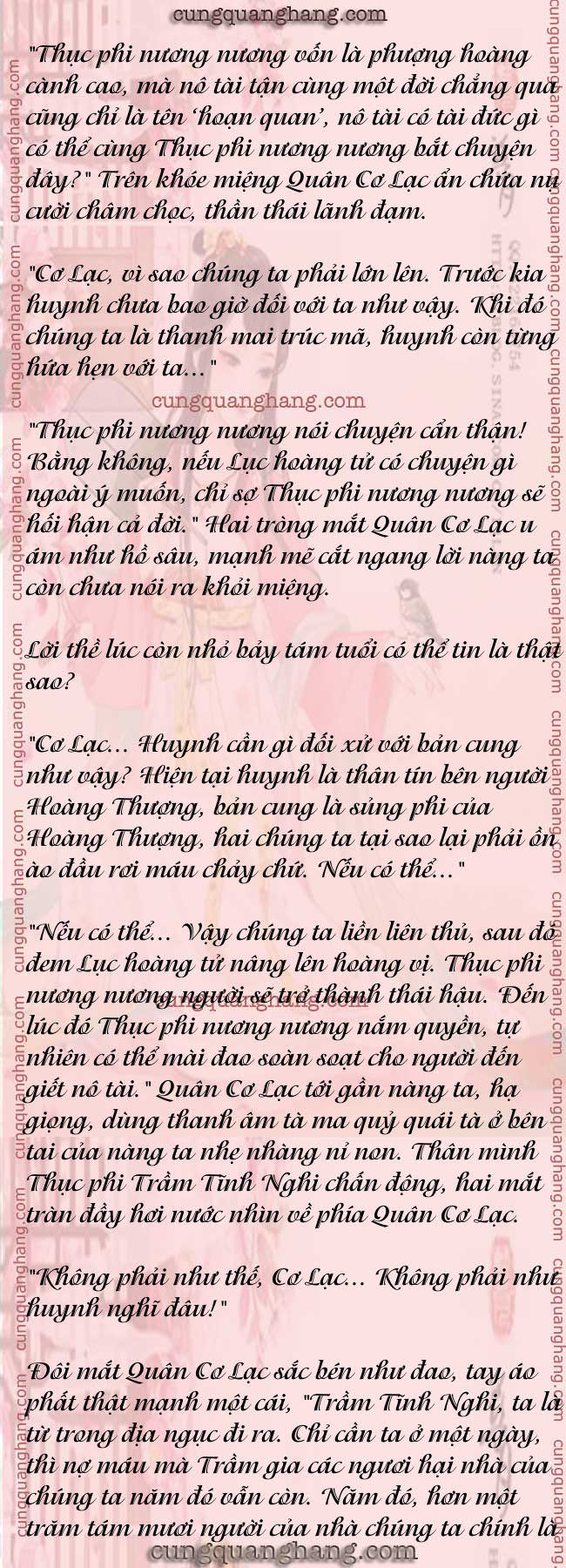 Sau khi hướng Quân Cơ Lạc hành lễ, toàn thân Đường Trọng Nguyên phát run, tim run gan sợ ngẩng đầu trộm nhìn Quân Cơ Lạc.