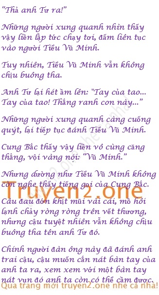 Anh Tư lai quay lại nhìn Tiểu Vũ Minh. Nói với cậu: “Coi như tao tha cho mày lân này, mày mà còn cứng miệng với tao nữa thì tao sẽ đánh chết mày!”