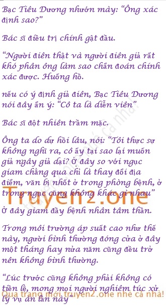 Bác sĩ điều trị chính run rẩy nhìn Bạc Tiêu Dương: “Ý của ngài là Y tá nói: “Trong một đêm gặp sự cố lớn như vậy, người tự nhiên bị điên cũng rất bình thường, dù sao trước kia cô ấy cũng là một ngôi sao lớn xinh đẹp, đột nhiên biến thành tù nhân, chắc chản là sợ hãi lo lắng, bị dọa điên rồi..