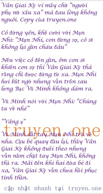 Vân Giai Kỳ quay người, vô tình trông thấy hai đứa trẻ ở đình nghỉ mát. Bạc Vũ Minh nắm tay Mạn Nhi, cậu nhận ra khi Vân Giai Kỳ trông thấy họ đã thay đổi sắc mặt.