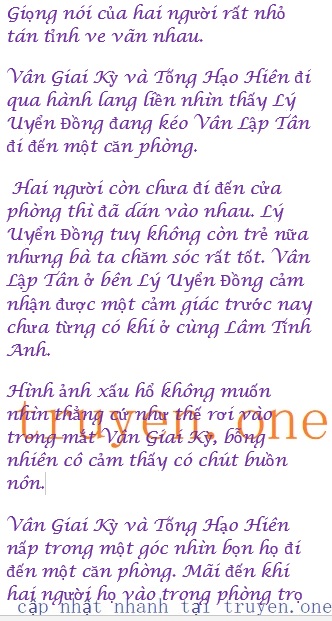 số 2406 thì liền đóng cửa lại. Vân Giai Kỳ đi đến trước cửa phòng áp sát vào. Cách cánh cửa cô nghe được giọng nói gợi tình của Lý Uyển Đồng. Tống Hạo Hiên chạy vội đến kéo cô qua một bên.