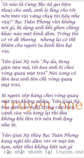 “Anh không thích thấy em thân mật với những người đàn ông khác” Mặc dù không trực tiếp nhìn thấy nhưng anh có thể tưởng tượng ra cảnh Vân Giai Kỳ đang trốn trong vòng tay của Cung Phi. Khi nghĩ đến điều đó, anh cảm thấy như đang bị đâm vào tim vậy.