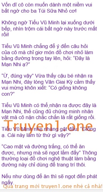 Thấy cậu bé cầm tượng người nặn bằng đường fondant trong tay, cô hơi ảo não nói: “Vũ Minh, tại sao con lại xuống đây?
