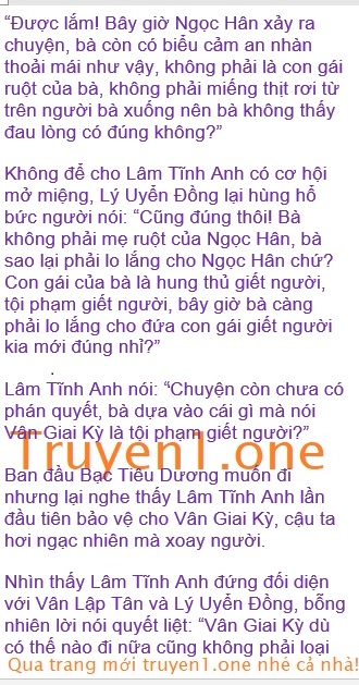 Lý Uyển Đồng cũng nói: “Tôi có dụng ý gì à? Bà còn mặt mũi hỏi tôi có ý gì sao? Tôi mới là người phải hỏi bà có dụng ý gì mới đúng! Bà không kết hợp lại hãm hại Ngọc Hân cùng đứa con gái tội phạm giết người kia sao? Bà và nghiệt chủng kia là cùng một bè mà thôi!”