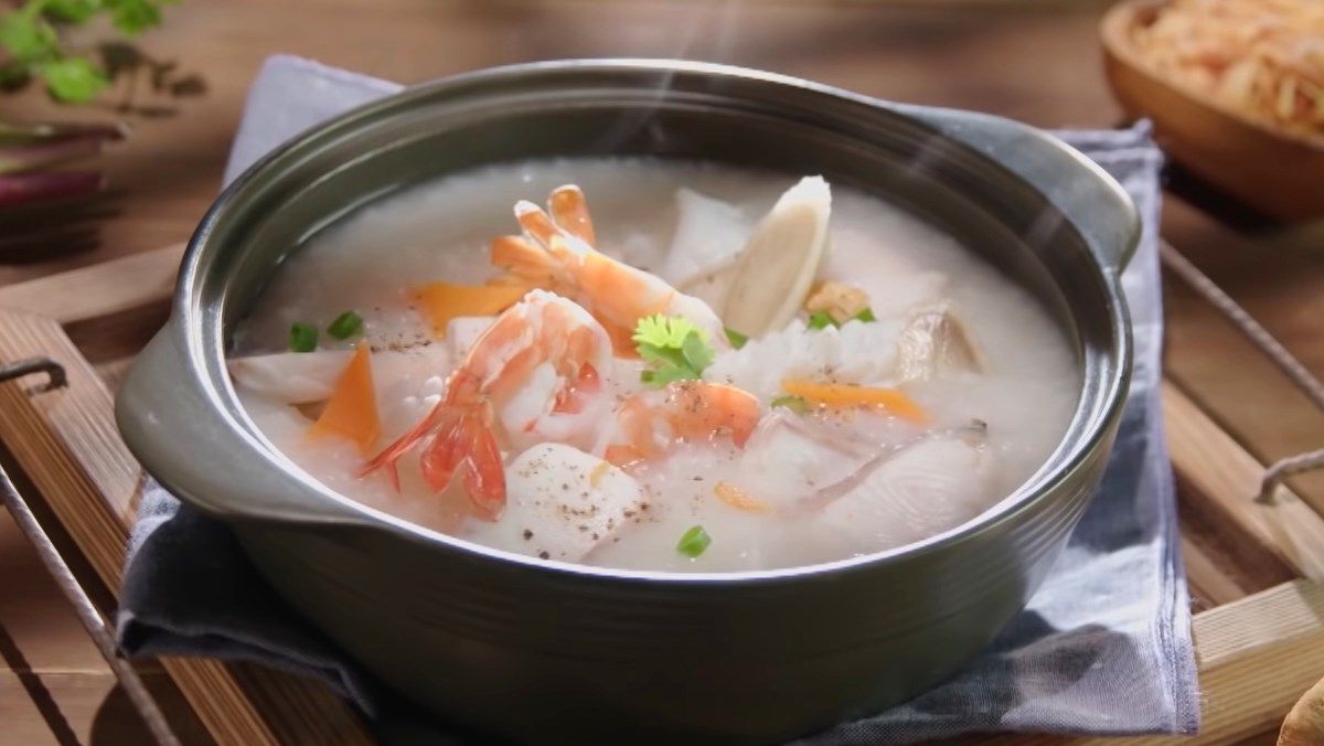 Mục Nhiễm nấu cháo hải sản, thích thêm thịt cua, tôm tươi, hải sản hoặc bồ câu, thịt heo, lấy "Tiên" là chủ. Nhưng suy xét đến nhà có hai đứa nhỏ, mà cua thì tính hàn, đứa nhỏ buổi chiều mới vừa ăn kem, bởi vậy Mục Nhiễm liền không thêm cua trong cháo, chỉ cho vào tôm tươi, mực, con sò, rau hẹ, thịt heo nạc.