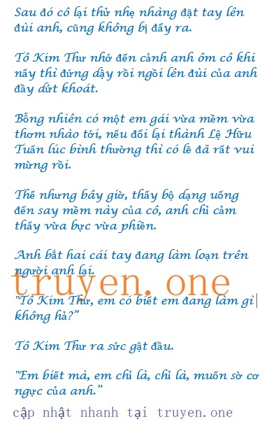 Nói đến đây, dường như cô ta không thế kìm nén được tình cảm của bản thân nữa nên liền cúi đầu xuống hôn lên môi anh ấy.