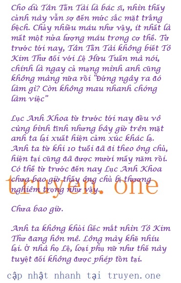 Lâm Thúy Vân nhìn thấy bộ dạng đáng thương của cô, viên mắt lại một lần nữa đỏ lên: “Bác sĩ Tân, anh nói cho Kim Thư biết đi, tôi nghĩ vào lúc này cậu chủ Lệ cũng rất muốn nhìn thấy cô ấy”