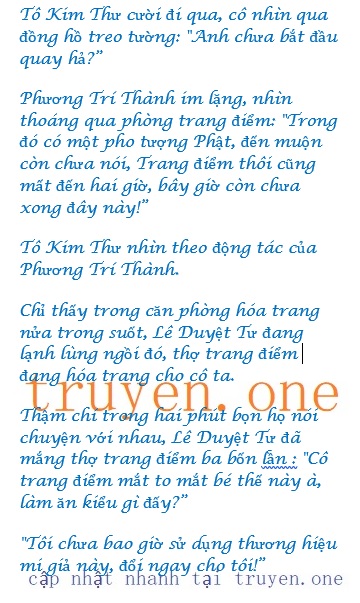 Tô Kim Thư lại nghĩ tới Lê Duyệt Tư Trong những cảnh quay trước, nếu có quá nhiều thoại trong kịch bản, cô ta sẽ yêu cầu dùng bảng nhắc thoại.