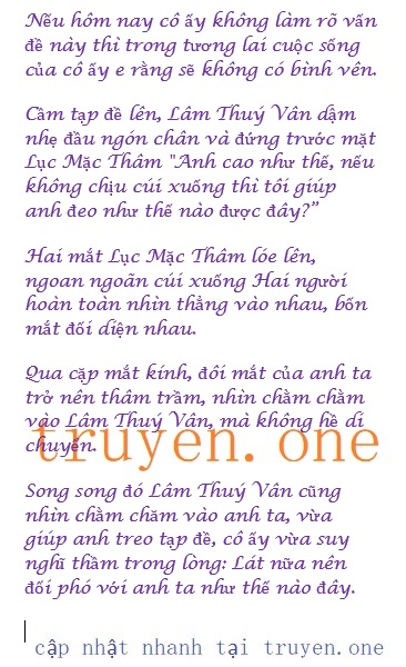 ‘Sau khi Lâm Thuý Vân buộc xong tạp đề, cô ấy nhìn lên thì thấy rằng khuôn mặt của hai người đã ở rất rất gần nhau áp của Lục Mặc Thâm phả vào mang tai cô ấy.