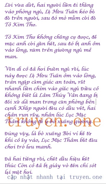 Mà Lâm Thúy Vân lúc này vừa nằm xuống giường đã ngủ thiếp đi, cơ bản không biết Lục Mặc Thâm đang nói gì ở bên tai Thấy cô ngủ say, Lục Mặc Thâm trực tiếp bế cô lên, tắm rửa thay ga trải giường rồi mới chìm vào giấc ngủ Lâm Thúy Vân ngủ dậy vô cùng tức giận, mà cơn tức này vô cùng nghiêm trọng.