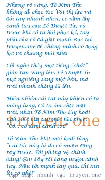 Lê Duyệt Tư rõ ràng là bị sốc, miệng cô ta mở ra vài lần, nhưng cô ta gần như không thể nói được: “Tô… Kim Thư… cô không dám chạm vào tôi!”
