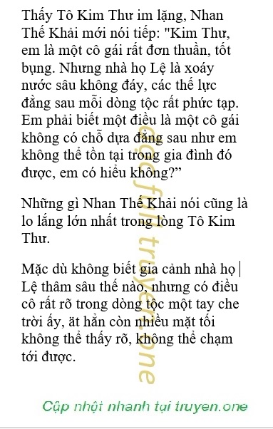Tô Kim Thư còn định nói gì đó, nhưng Nhan Thế Khải đã ngắt lời cô: “Không nhưng nhị gì hết, em nhất định phải tin anh.”