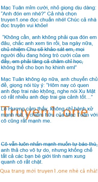 Cô dùng “hửm’, giọng thiếu nữ ngọt ngào hơi nâng lên, cực kì nũng nịu, là bắt chước cách nói chuyện lúc thường của anh.
