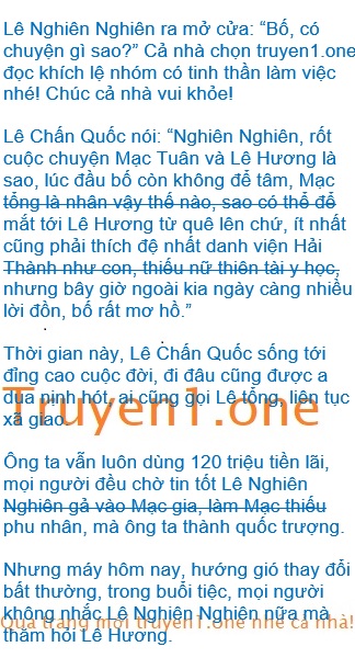 Lúc này, tiếng gõ cửa vang lên, giọng lo lắng của Lê Chấn Quốc vọng vào: “Nghiên Nghiên, con ở trong phòng không?”
