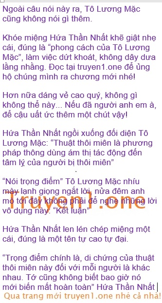 “Cậu nói không sai.” Tô Lương Mặc nheo mắt lại, lạnh nhạt nói ra từng chữ một trước ánh mắt mang theo đầy vẻ trêu chọc của Hứa Thần Nhất: “Di, chứng, của, thuật, thôi, miên, bao, giờ, mới, biến, mất?”