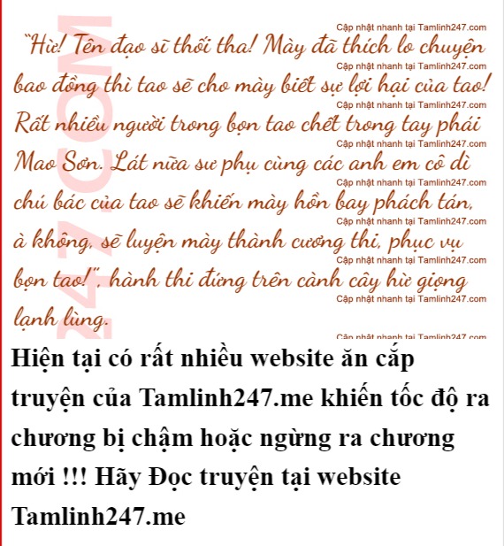 “He he, quả nhiên mày không giống những đạo sĩ khác. Nhưng hãy suy nghĩ cho kỹ, dám ra tay với tộc hành thi bọn tao thì không phải là điều mà một đạo sĩ cỏn con như mày có thể làm được đâu!”