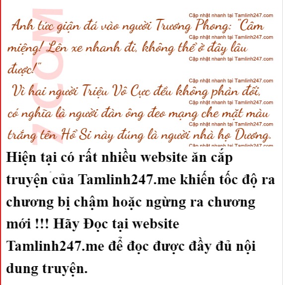 Nhưng Hổ Si lại nói: "Sau này muốn đánh lúc nào cũng được nhưng hôm nay, tôi phụng lệnh cô chủ tới đón các người về khách sạn! Mời cậu chủ Mạc đi bên này!"