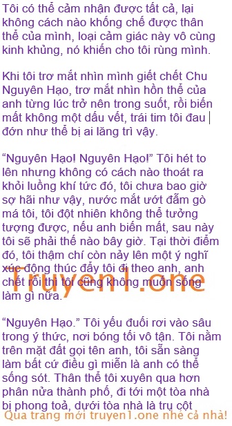 Sắc mặt Chu Nguyên Hạo có sự thay đổi lớn, vội vàng ôm tôi lên, trong mắt tôi đột nhiên lộ ra tàn nhẫn, tôi mạnh mẽ bóp cổ anh, nâng anh lên, tay kia đột nhiên đâm vào ngực anh. Anh căn bản không hề phòng bị tôi, tay tôi xuyên qua tim anh, từ sau lưng anh đâm ra ngoài.