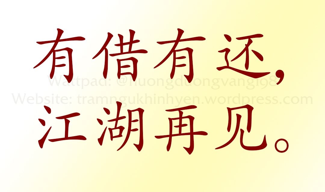 "Có vay ắt có trả, hẹn gặp chốn giang hồ*." Triệu Kỳ đập ba lượng bạc vụn kia lên bàn, nghển cằm vênh mặt: "Thế nào? Có sắc thái văn chương chứ?"
