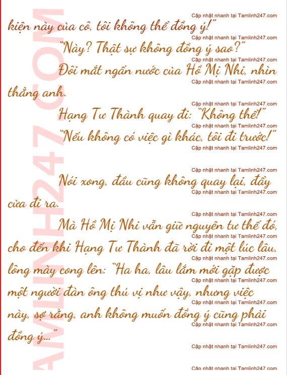 Hạng Tư Thành nhíu mày, anh đặc biệt không thích cảm giác bị người khác lợi dụng, ngay lập tức thiện cảm với Hồ Mị Nhi, giảm xuống không ít, lạnh lùng nhìn cô ta: “Cho nên, tất cả việc này, cô đều đã sớm lên kế hoạch?”
