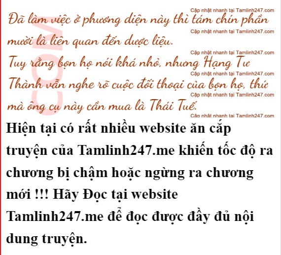 Hạng Tư Thành thì khác, anh rất hài lòng, có đôi khi không cần vào trong hiệu thuốc, người mà có hiểu biết chỉ cần đứng ở cửa đã phân biệt ra mùi vị có phải loại tốt hay không, anh cảm thấy nơi này không phải là nơi chỉ có cái danh hão.