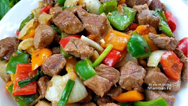 Tống Điềm dùng đũa gắp lên mới phát hiện đấy là thịt xào ớt chuông (1), chẳng qua miếng thịt này toàn màu tương, ớt thì, không cần phải nói, còn tưởng đâu là miếng da chứ.