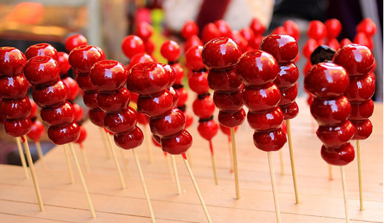 (3) kẹo hồ lô (thực chất là quả sơn trà ngào đường)