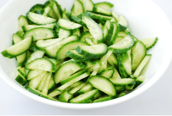 Tỏi giã giập xào cùng với dưa chuột, dưa chuột xanh mơn mởn bóp qua với muối cho ra nước. Đảo tỏi trong chảo, thêm chút giấm, tương, dầu ớt rồi mới cho dưa chuột vào, chua cay kết hợp, dưa chuột giòn ngọt, là món ăn kèm làm tăng thêm hương vị.