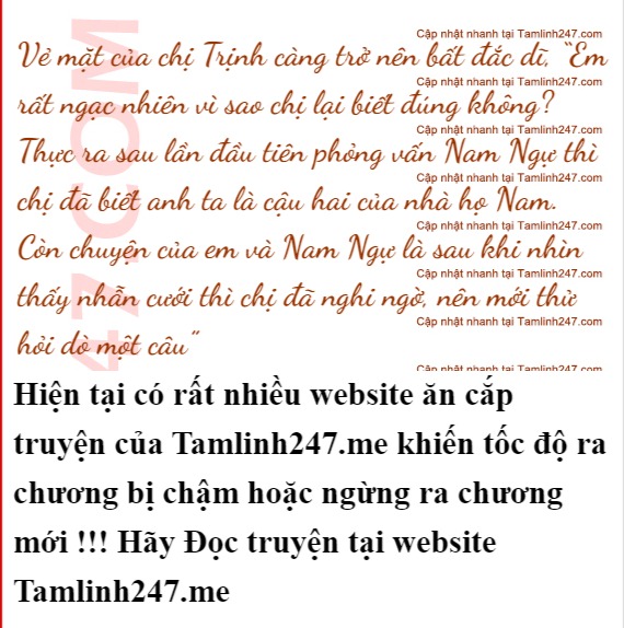 “Nếu là vì tò mò thì em đừng nên hỏi nữa” Chị Trịnh tỏ ra nghiêm túc, “Chuyện của nhà họ Nam không phải là chuyện mà những người dân thấp bé như chúng ta có thể nghe ngóng được đầu”