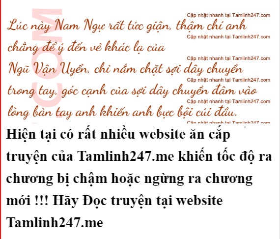 Lúc cô đang nheo mắt cố gắng nhìn rõ mặt dây chuyền đó thì không ngờ bên tại vang lên tiếng quát giận dữ của Nam Ngự.
