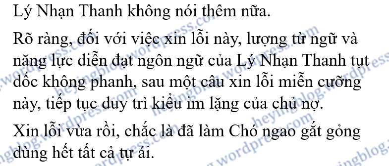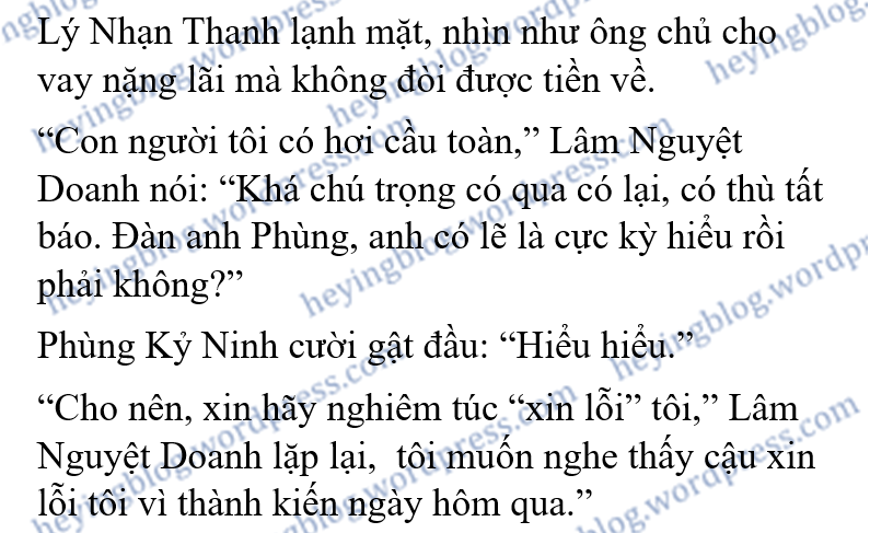 Yên lặng rất lâu, Lý Nhạn Thanh mới nhăn mày nói: “Xin lỗi.”