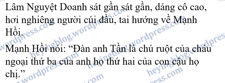 Đối với Lâm Nguyệt Doanh không hiểu biết về mối quan hệ họ hàng, bắt đầu xoè ngón tay ra nghiêm túc đếm quan hệ.