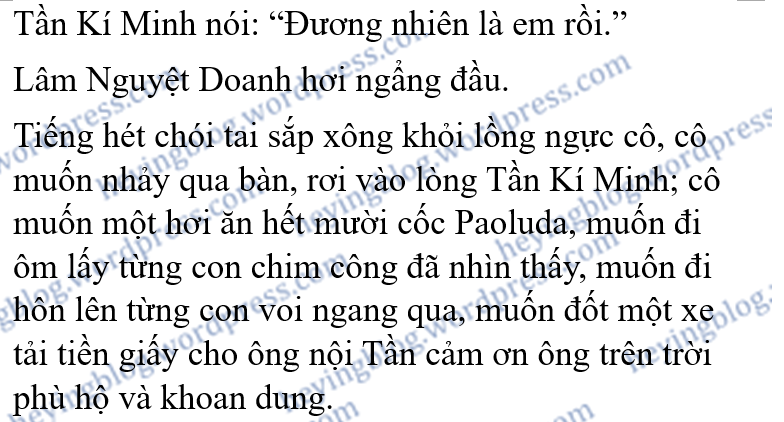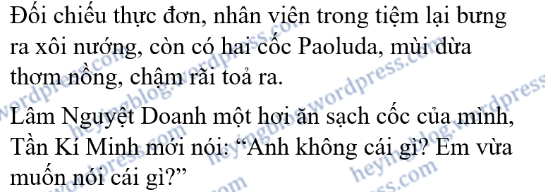 Lâm Nguyệt Doanh nói: “Em hỏi trước mà, anh phải trả lời câu hỏi của em trước.”