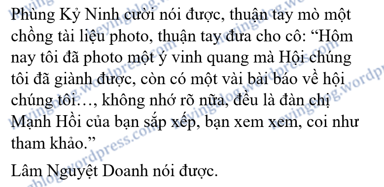 Buổi sáng ngày hôm sau, cô gửi tin nhắn cho đàn chị Mạnh Hồi, nói mình đồng ý tham gia Hội, đợi lát nữa sẽ nộp lại một đơn xin tham gia Hội mới.