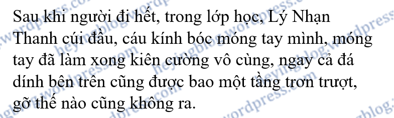 Phùng Kỷ Ninh vỗ vỗ vai cậu ta, cười: “Nhịn chút đi, Tiểu Hồi nói rồi, dính trên tay cậu ít nhất một tuần mới giúp cậu phá móng, đã chiếu đèn rồi, lại quét mấy lớp sơn móng, đừng phí sức nữa.”