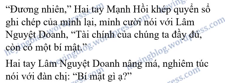 Mạnh Hồi nhìn xung quanh, nhỏ tiếng: “Nếu nói vậy, chị còn có bí mật.”