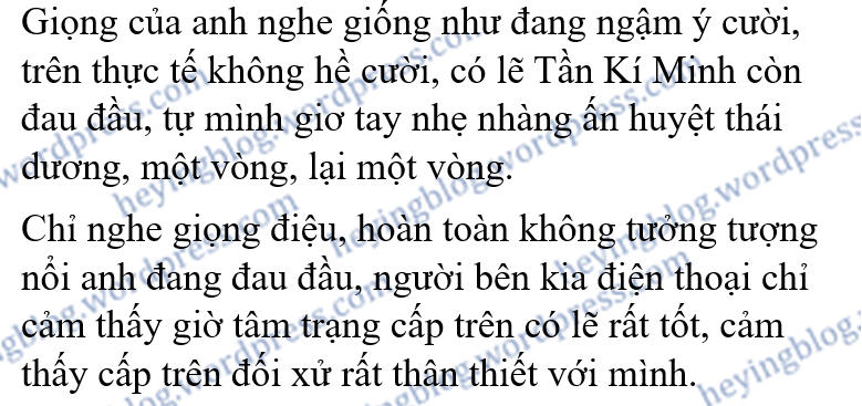 “Kể chuyện trước khi đi ngủ,” Tần Kí Minh mỉm cười, “Còn nhớ không, trước đây em thích nhất là nghe kể chuyện trước khi ngủ, tối nào trước khi đi ngủ cũng quấn lấy anh, muốn anh kể cho em. Mỗi ngày một câu chuyện không trùng lặp, làm anh phát sầu, trên đường nhìn thấy cái gì cũng phải nhớ, tránh cho tối về kể không ra câu chuyện nào làm em thất vọng.”