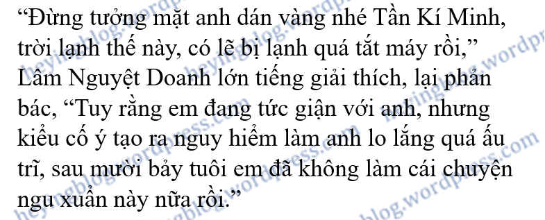 Lâm Nguyệt Doanh tính nóng như kem, cãi lại anh: “Anh là gì của em chứ vì sao phải nói với anh?”