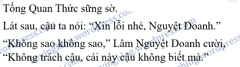 Lâm Nguyệt Doanh thật thà nói: “Xin lỗi nha, Tống Quan Thức, bố mẹ tôi ly hôn rồi, từ nhỏ tôi đã không sống với họ.”