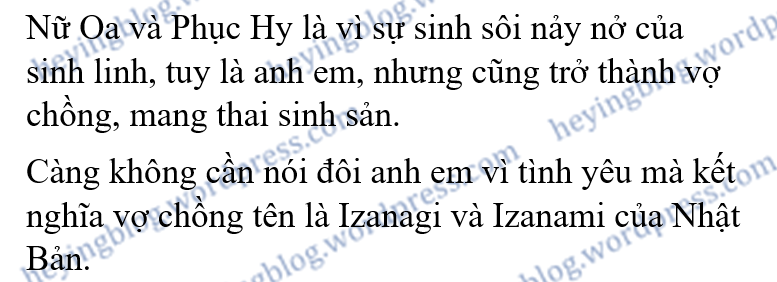 “Bất kể là dân tộc nào, ở quốc gia nào, đều có rất nhiều truyền thuyết và thần thoại liên quan đến sinh sản nối dõi của anh em.” Lâm Nguyệt Doanh nói, “Tuy là anh em, cũng là vợ chồng.”