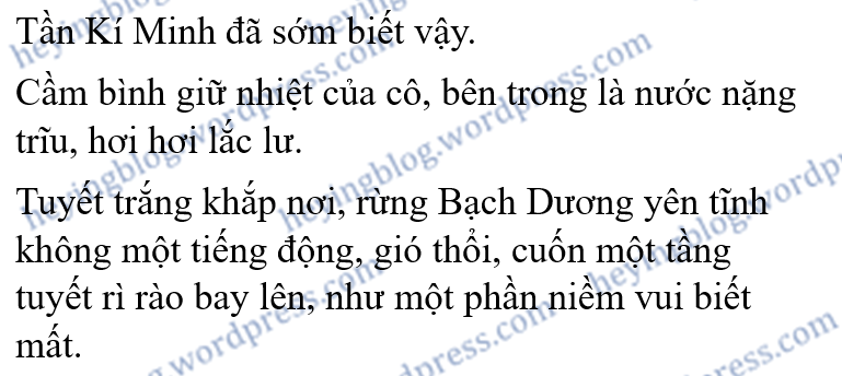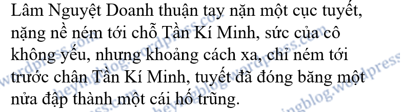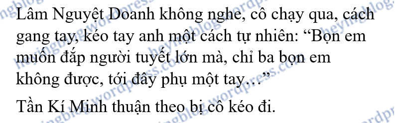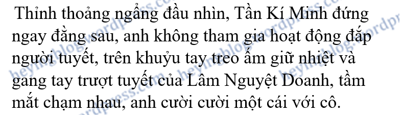 Tần Kí Minh chỉ im lặng đứng đó, nhìn Lâm Nguyệt Doanh và bạn cùng trang lứa của cô, thân mật sáp lại nhau, hết sức phấn khởi thảo luận nên hoá trang cho hai người tuyết này thế nào, bọn họ đã quyết định lấy tên cho chúng nó là Nữ oa và Phục Hy, đồng thời định trang trí cho đôi người tuyết này xinh đẹp hơn chút…