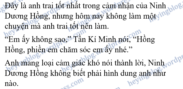Biểu hiện của Tần Kí Minh không giống với người cùng bậc với các cô, cũng có thể trước đây anh đã chăm sóc Lâm Nguyệt Doanh từ nhỏ đến lớn, mới lộ ra sự chín chắn vô cùng. Cách nói năng làm việc, đa số là xuất phát ở góc độ người giám hộ. Nói tóm lại, Ninh Dương Hồng không thể, cũng không dám nói giỡn với Tần Kí Minh, chỉ lúng ta lúng túng nói vâng, xin anh yên tâm.