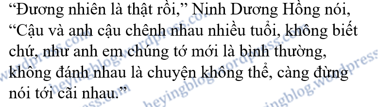 Lâm Nguyệt Doanh không khóc nữa, chỉ ôm Ninh Dương Hồng, nghẹn ngào nói mình và Tần Kí Minh cãi nhau, cãi nhau rất to, bây giờ cô rất mù mịt, cũng có hơi buồn, cảm thấy sau này sẽ không thể giống như anh em ngày trước nữa.