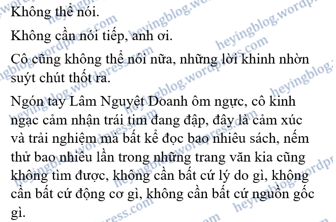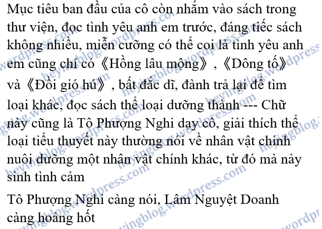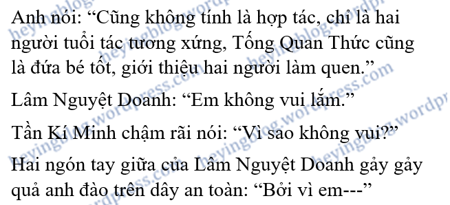 Trong những chương văn kia, đa số đều miêu tả nhiều lần trói buộc sâu nặng giữa nam chính và nữ chính, viết sự đặc biệt của bọn họ đối với đối phương, không thể thay thế. Lâm Nguyệt Doanh không cách nào đặt Tần Kí Minh ở một vị trí thích hợp, anh là người giám hộ, là người anh cả, là thầy, cũng là mục tiêu.