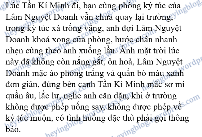 Đợi Tống Nhất Lượng dẫn Tống Quan Thức lưu luyến không rời đi, Tần Kí Minh mới đến ký túc xá của Lâm Nguyệt Doanh, giúp cô thu xếp chăn màn.