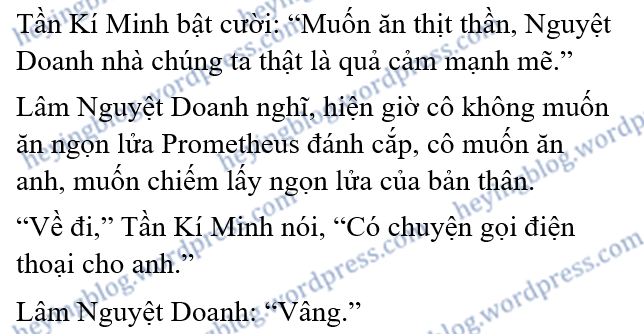 Lâm Nguyệt Doanh nói: “Sao anh không nói sâu dậy sớm còn có thể ăn Prometheus (*)chứ?”