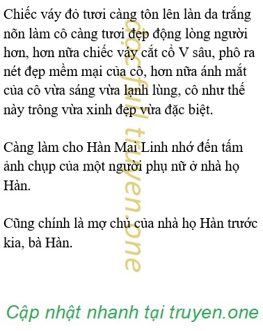 “Mai Linh, cậu làm sao thế?” Câu hỏi của Thẩm Cửu làm Hàn Mai Linh lấy lại tinh thần, khi chạm phải ánh mắt của Thẩm Cửu, cô có hơi hoảng loạn lắc đầu nói: “Không, không có gì, vì cậu mặc bộ này đẹp quá, làm tớ kinh ngạc ngây người luôn.”