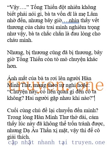 Hàn Minh Thư không động đậy, một lúc sau mới quay đầu lại: “Chuyện này cũng nên có người nói rõ ràng, anh cứ nghỉ ngơi đi, chúng tôi đi một lát rồi sẽ quay lại.”