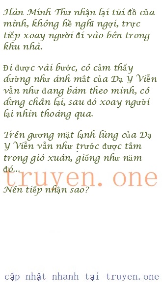 Dạ Y Viễn rất khéo léo hiểu lòng người, nhìn thấy ánh mắt đó của Hàn Minh Thư anh có đôi chút ngạc nhiên, một lúc sau thì mỉm cười nói: “Em không cần suy nghĩ quá nhiều, tôi không có ý xấu, chỉ đơn giản muốn tìm gặp lại người cũ, em đi vào đi”
