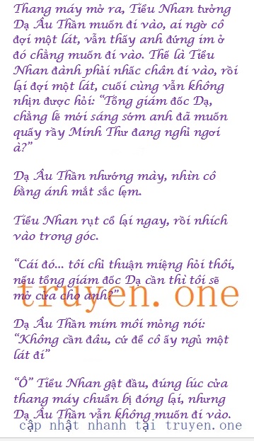 Đến khi thang máy chính thức đóng lại, Tiểu Nhan vẫn đứng mơ màng trong thang máy, nhưng… sau khi nghĩ kỹ lại, cô cảm thấy mình đừng quản nhiều như thế, dù gì đây cũng là chuyện riêng của Minh Thư.
